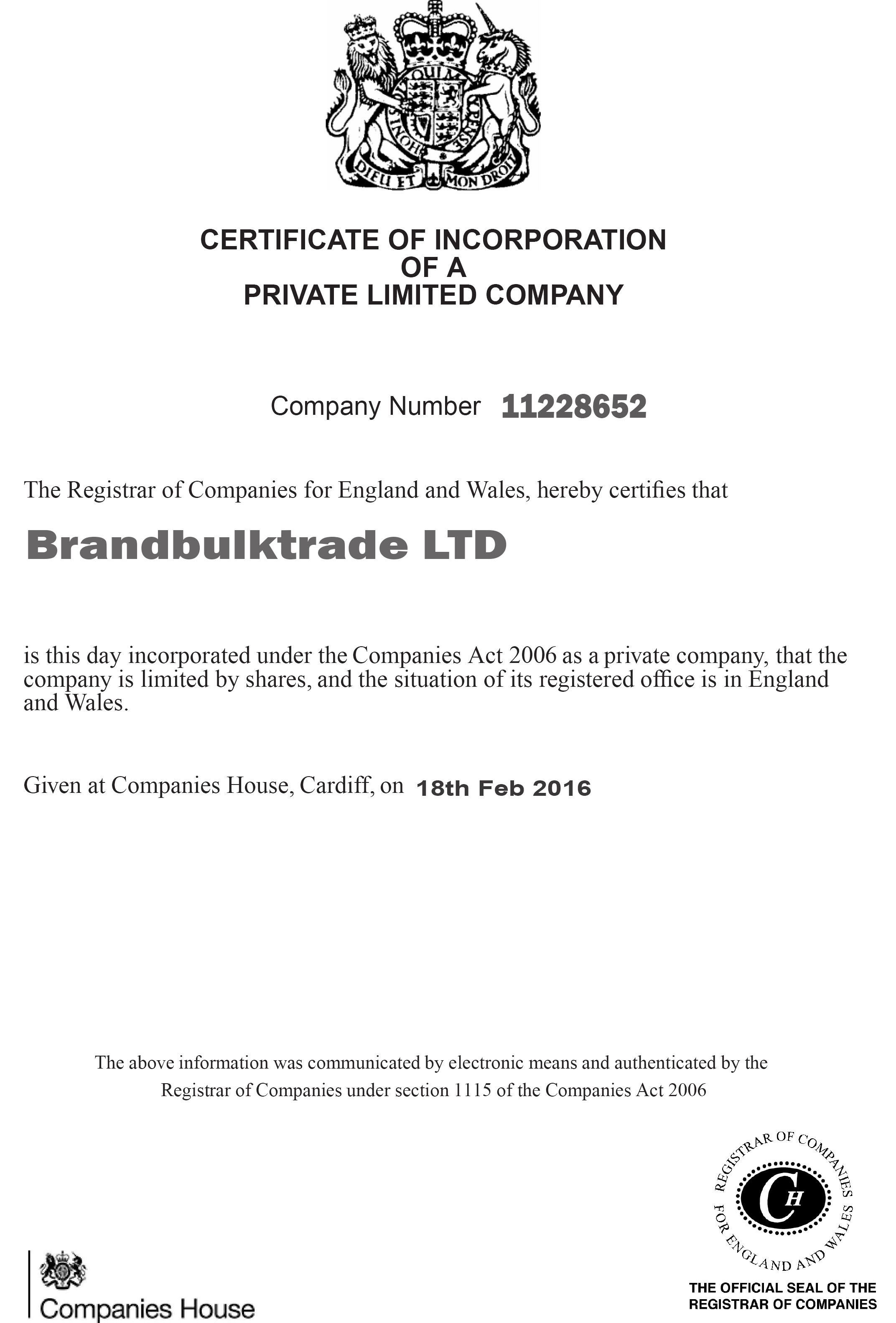 Yes we are officially and properly registered with the united kingdom company house our company registration number is 138898 and registered with the name Brandbulktrade LTD